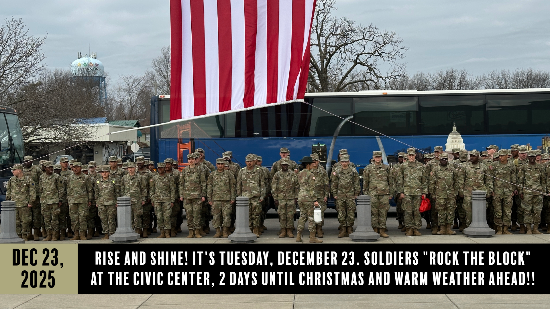 As part of Fort Leonard Wood’s Holiday Block Leave, soldiers have been coming to Lebanon since 2019 to spend a day feeling welcomed, appreciated, and at home. The day started simply, with a fantastic breakfast at The Elm Street Eatery. From there, soldiers were greeted at the Cowan Civic Center by community members and public officials that lined the entrance, waving small American flags. Above it all, a firetruck lifted a giant American flag, setting the tone for the day.