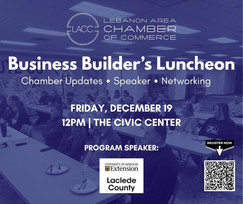 Join us for our Business Builder’s Luncheon featuring special guest speaker Dr. Ashley Allen-Brown from MU Extension talking about "Turning Data into Civic Muscle"!