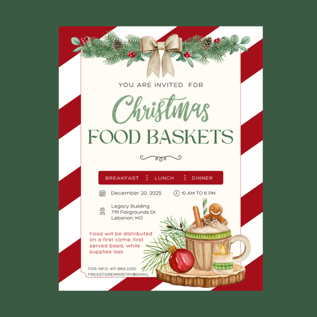 The end of the year is financially challenging for so may families. The Free Store would like to help take some of the pressure off with our Christmas Food Basket event. With taxes, higher utility costs, kids home from school, and Christmas, finances really take a hit. We strive to provide food for the whole day including items for Christmas dinner.