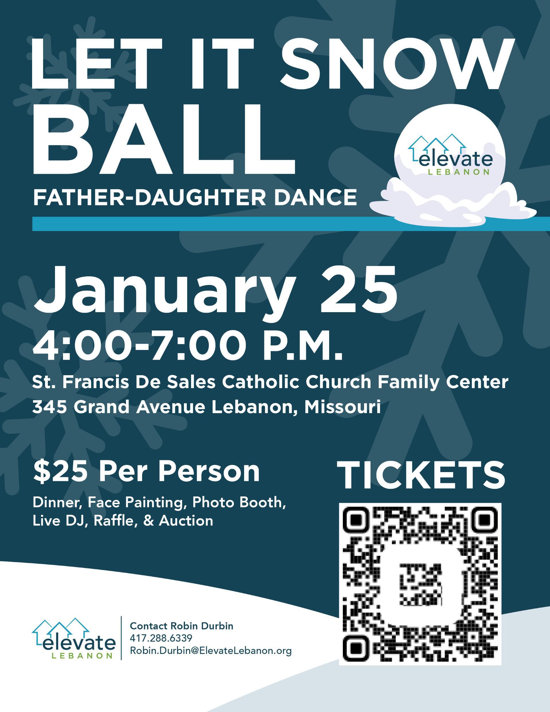 4th Annual Father-Daughter Dance! Get ready for a night filled with dancing, loads of fun, & games that cater to all ages! DJ, food , photo booth, dessert, auction, and face painting. See you on the dance floor! Tickets required. Scan the QR code for online ticket purchase or swing by Elevate Thrift.