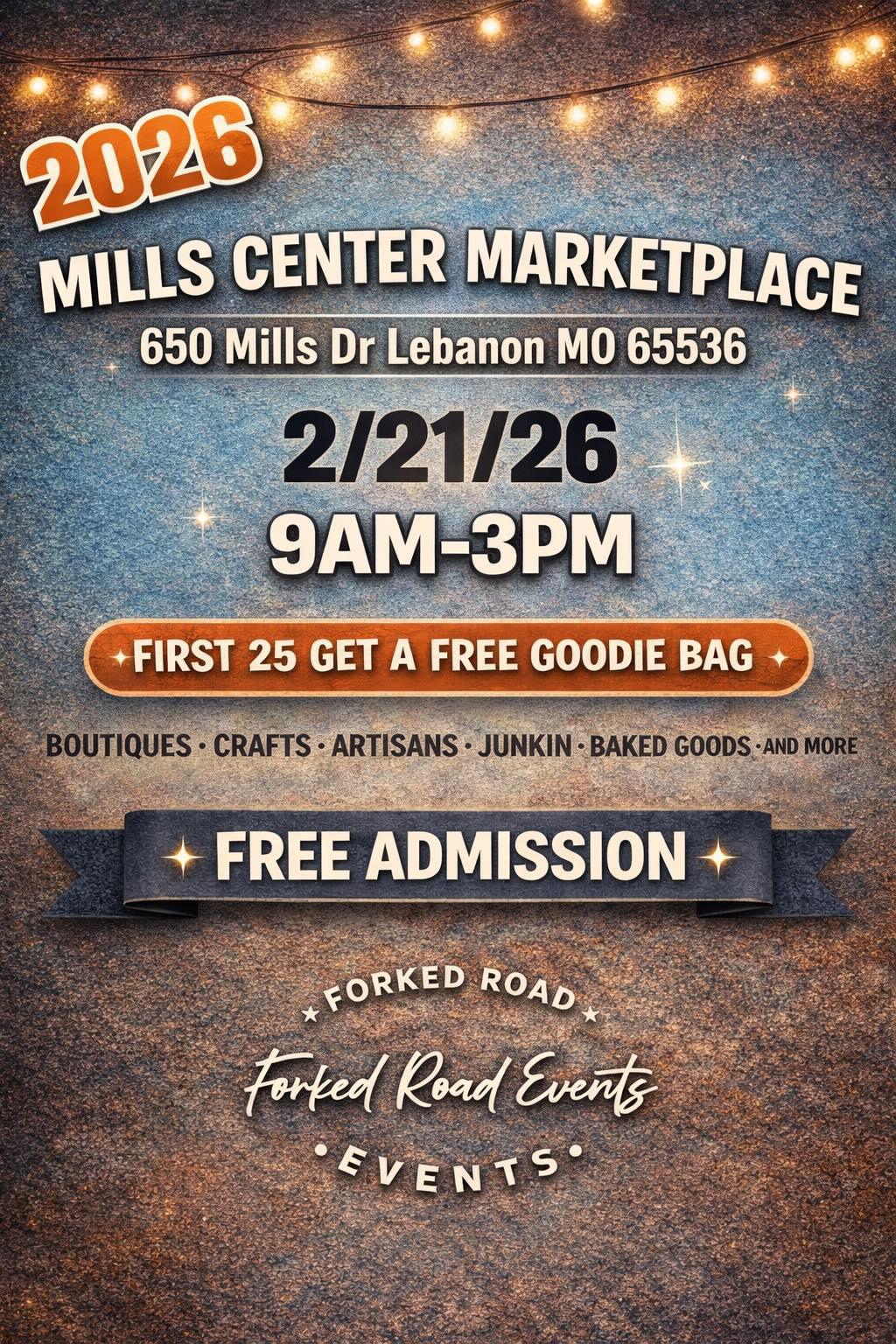 Come join us for a day of shopping, food and drinks!! 9-3pm on February 21,2026! This is our smaller opening event to our Forked Road Events season. These handpicked vendors have amazing one of a kind items. We will have different kinds of yummy food, kettle corn and fresh squeezed lemonade to celebrate our first event of 2026. The first 25 shoppers through the door will get a FREE GOODIE BAG! If you have been to one our events you KNOW these bags are worth more than $75-150!! Bring a friend or two! Some booths will be doing giveaways throughout the day! DON'T PASS UP THIS EVENT!!!