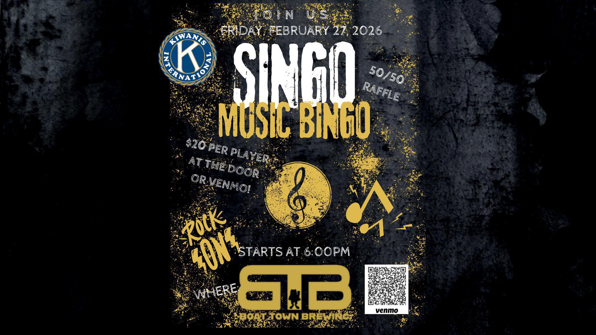 It’s SINGO time!! Mark your calendars and don’t miss out on this ROCKIN GOOD TIME!! Take BINGO, add MUSIC and you’ve got yourself a game of SINGO! We sold out last time, but we will be prepared to see you all Feb 27th at Boat Town Brewing.